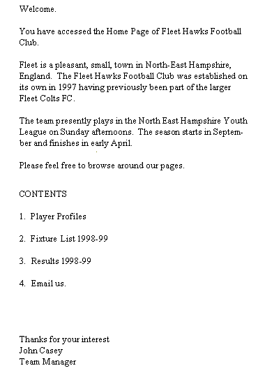WELCOME TO THE HOME OF THE HAWKS